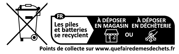 AVERTISSEMENT : (1) Tenir à l’écart des enfants. En cas d’ingestion, consulter immédiatement un médecin. (2) Ne pas installer la pile à l’envers, ne pas la recharger, ne pas la jeter au feu et ne pas la mélanger avec d’autres types de piles ; elle peut exploser ou couler et entraîner des blessures. Remplacer toutes les piles en même temps.
