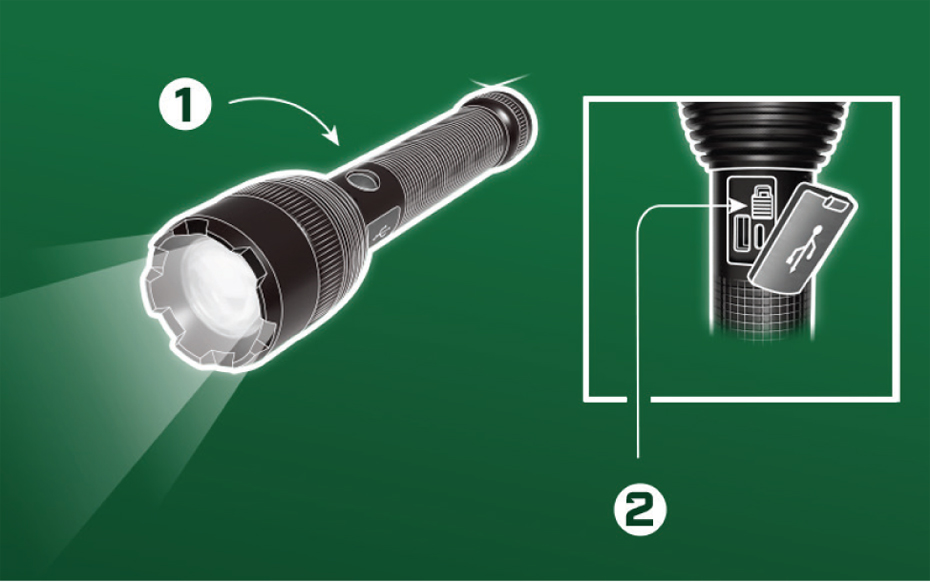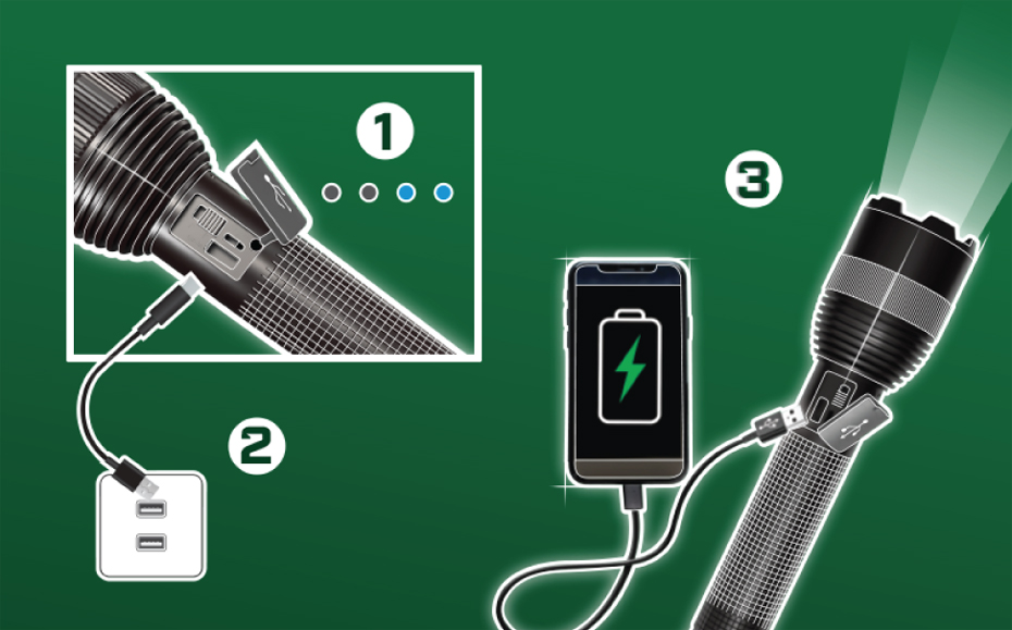 La lampe de poche peut être utilisée pour charger un téléphone portable ou d’autres appareils portables.
