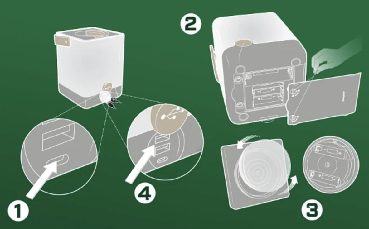 Pour remplacer les piles au lithium-ion dans la lanterne, dévissez le dessous et retirez le couvercle des piles à l’intérieur. Suivez les inscriptions pour vous orienter.