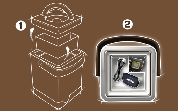 Tirez sur la poignée pour retirer le couvercle et révéler un espace de rangement à plusieurs niveaux.