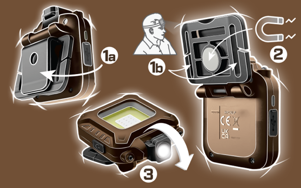 Le Jeep Multi-Purpose Handsfree Light offre une luminosité puissante dans un design compact et innovant. Attachez-la facilement aux vêtements ou à une casquette grâce à la pince polyvalente, fixez-la à une surface métallique grâce à l’aimant ou utilisez la sangle de tête comprise pour diverses applications mains libres. Grâce à la fonction pivotante, choisissez parmi six modes, comprenant la zone, le mode directionnel et la lumière directe précisément là où vous en avez besoin. Activez le mode capteur de mouvement en option pour basculer entre les modes directionnels sans appuyer sur un bouton. Cette lampe fine et durable est résistante à l’eau IPX4 et dispose d’une lentille incassable, conçue pour résister aux exigences de l’aventure, sur et hors route.