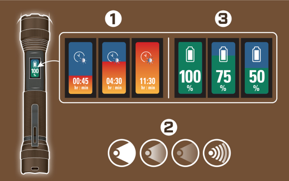 Ne restez jamais dans l’obscurité grâce à la lampe avec indicateur d’alimentation numérique Energizer! L’indicateur d’alimentation facile à utiliser vous offre confort, confiance et flexibilité, car vous savez de combien d’autonomie vous disposez tout en ayant la possibilité d’ajuster la luminosité pour maximiser cette autonomie!