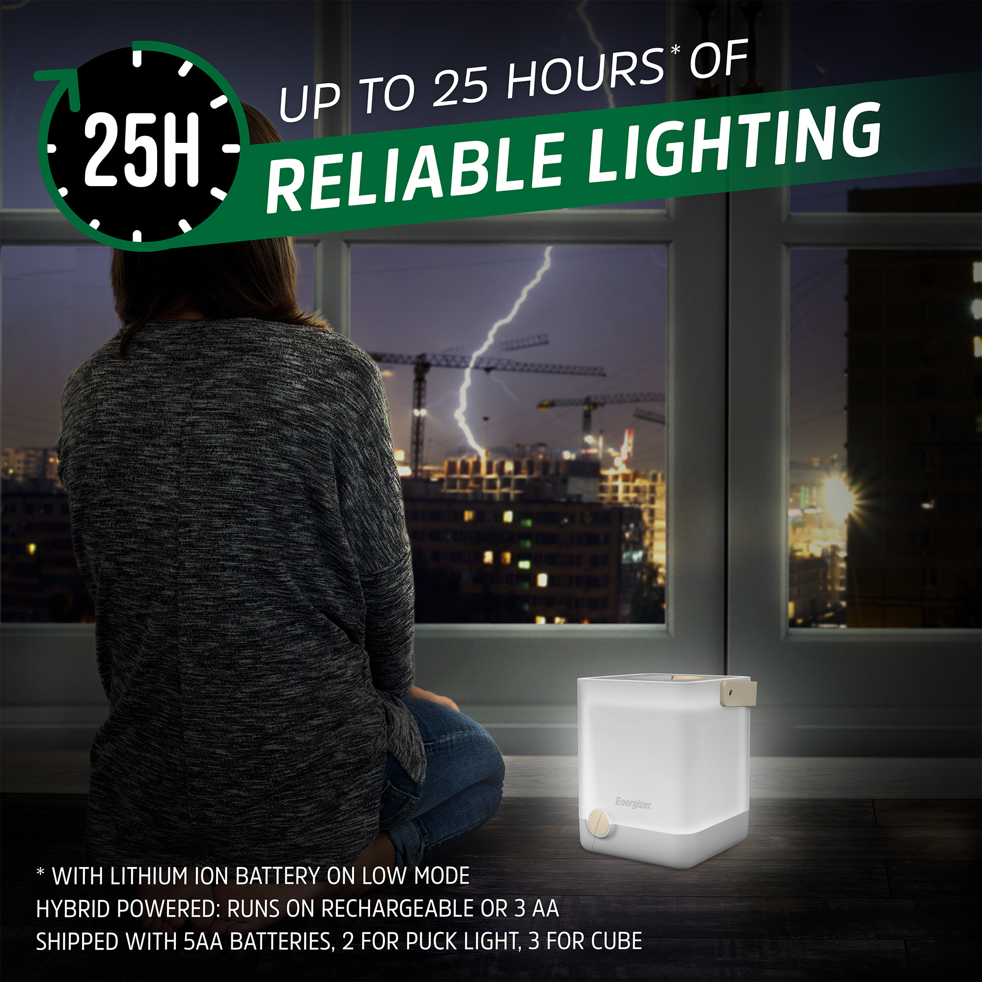 Carry puck light by handle or flip up hook on top of handle to hang for handsfree use.