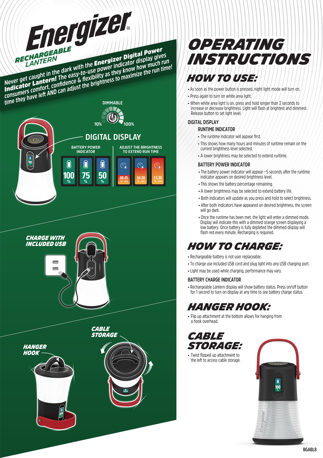 The battery power indicator will appear ~5 seconds after the runtime indicator appears on the desired brightness level.