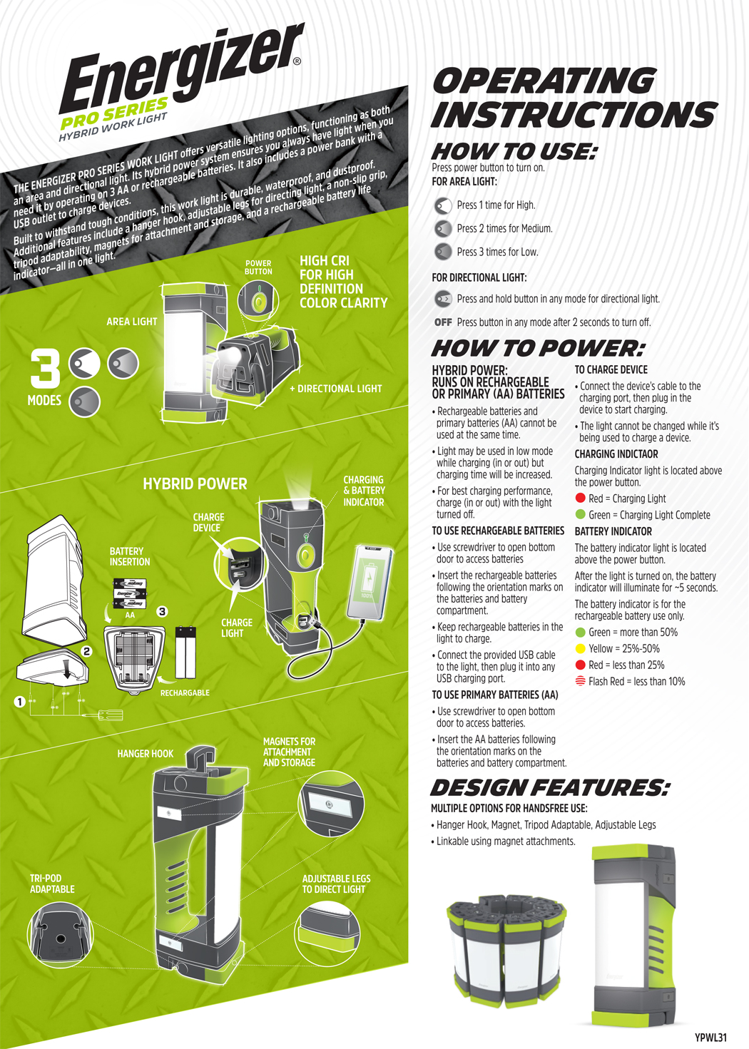 After the light is turned on, the battery indicator will illuminate for ~5 seconds